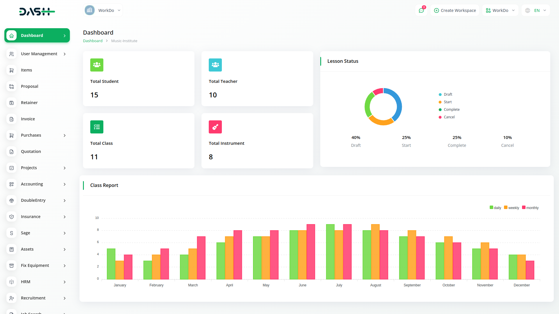 Numerish`s Music Institute Module is like a musical playground, simplifying class details, attendance, and logins for students and teachers to enjoy a harmonious learning experience.